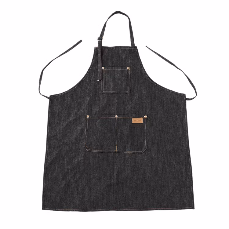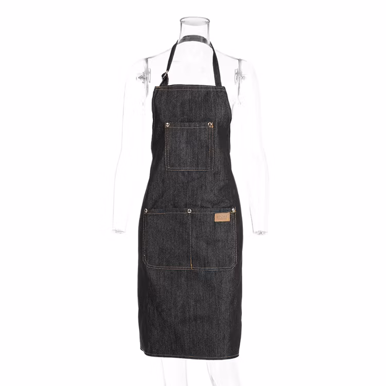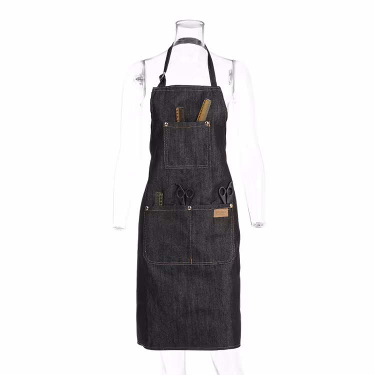 Ett förkläde till frisörer tillverkat i jeansmaterial i hög kvalité med rymliga fickor på framsidan för frisörsaxar, borstar, kam och hårvårdsprodukter.