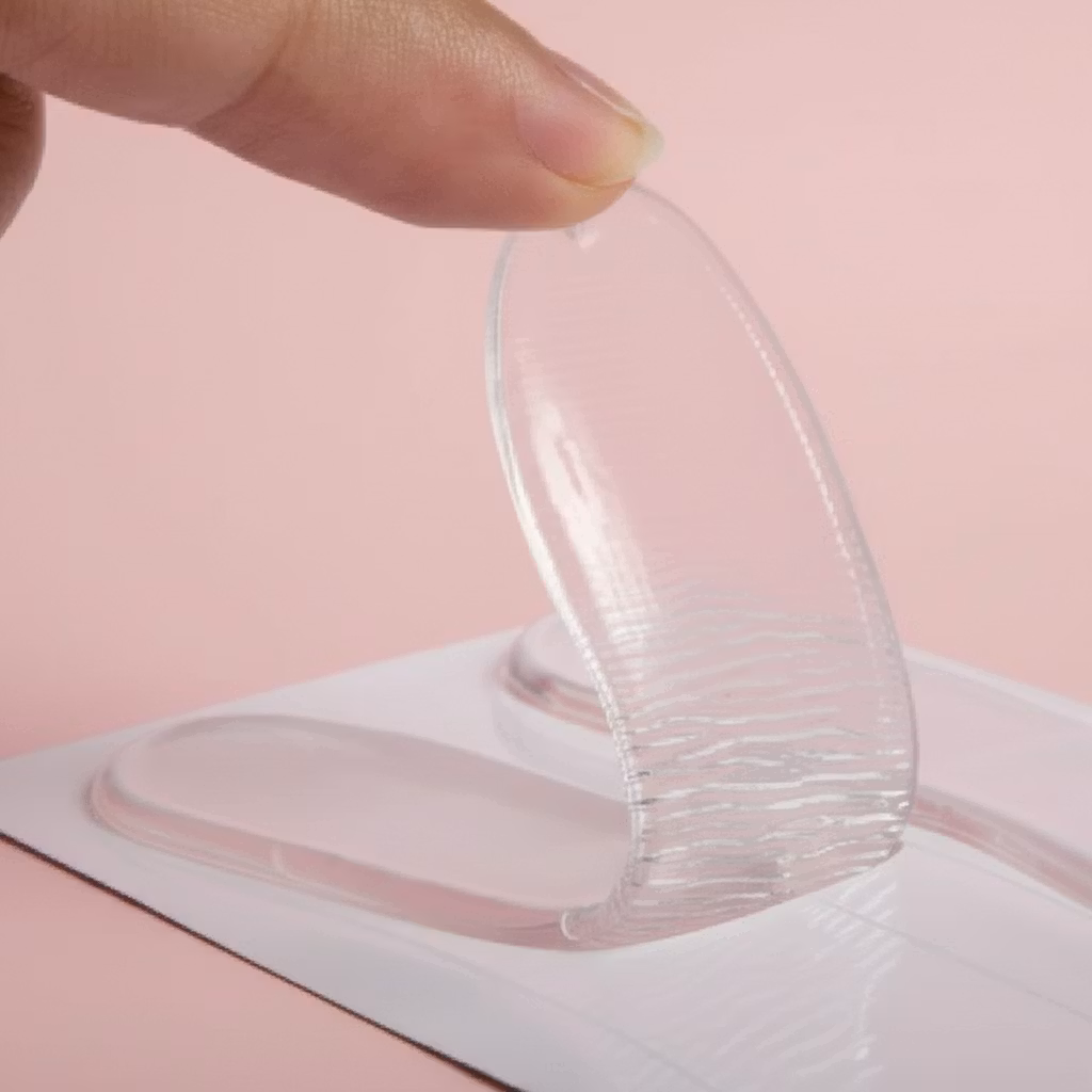 Fyra stycken (två par) skavsårsplåster som du klistrar fast på skon insida vid hälen. Inlägget gör även de allra mest obekväma skorna behagliga att bära. Tillverkat i mjukt silikon.
