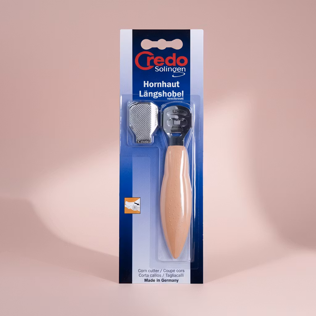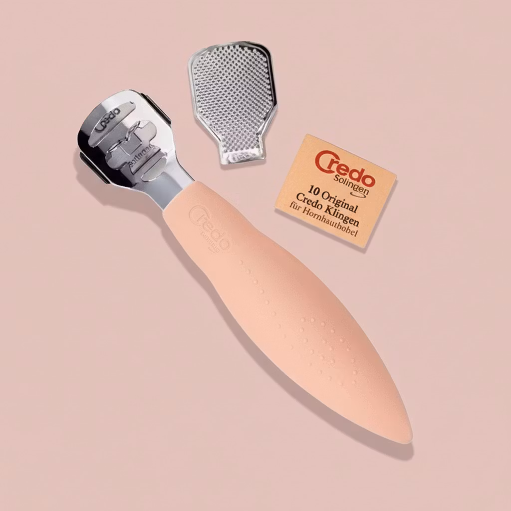 Dessutom medföljer tio stycken utbytbara hyvelblad som ger dig möjligheten att hyvla bort förhårdnader under dina fötter.