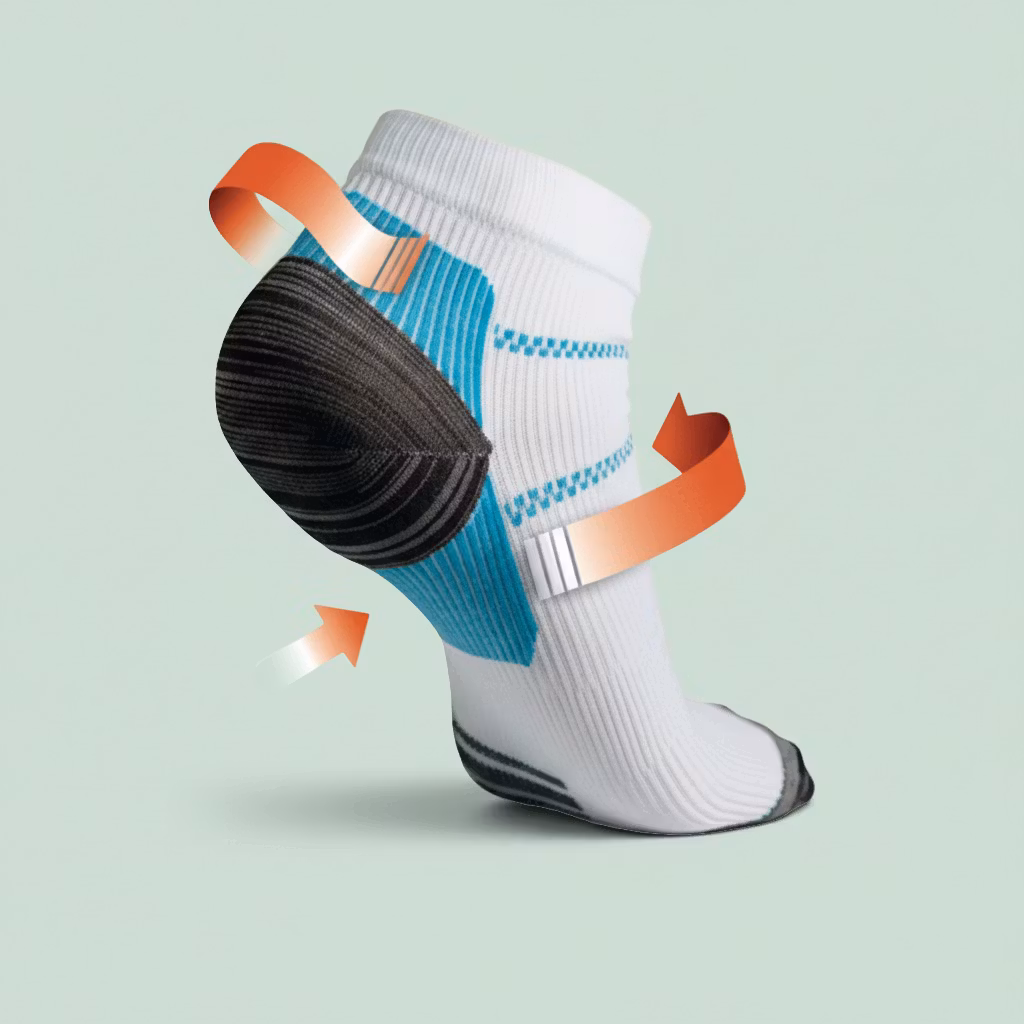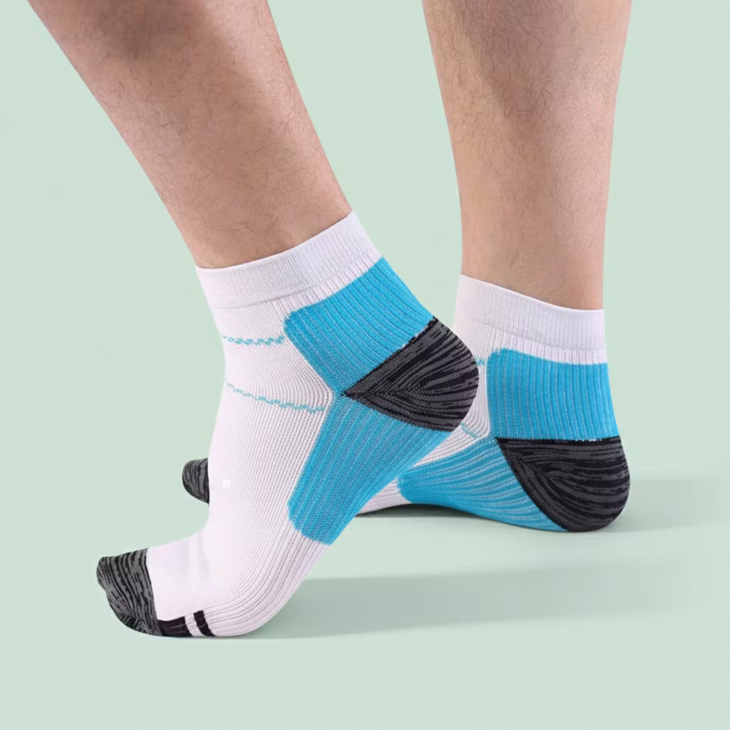 Kompressionsstrumporna ökar blodcirkulationen och förhindrar överbelastning av benen och anklarna vid exempelvis löpning eller andra sportaktivteter.