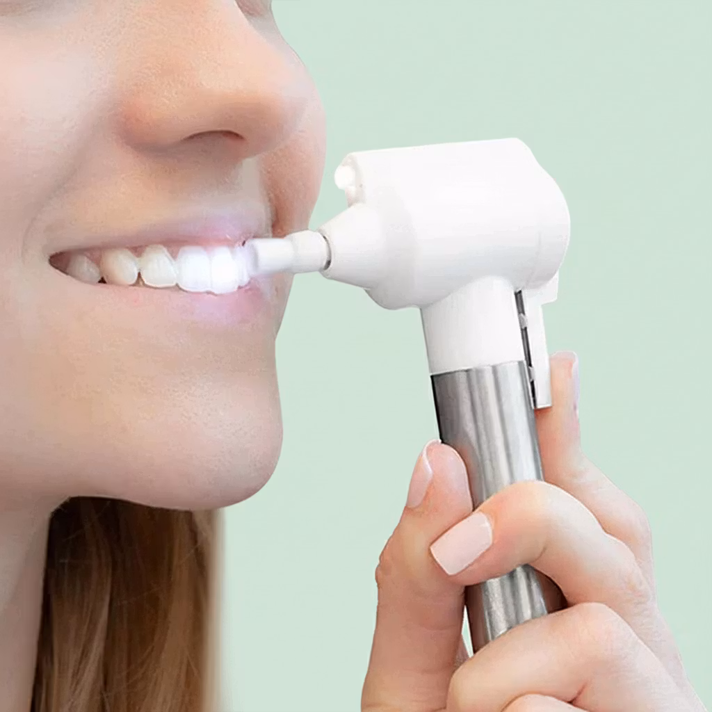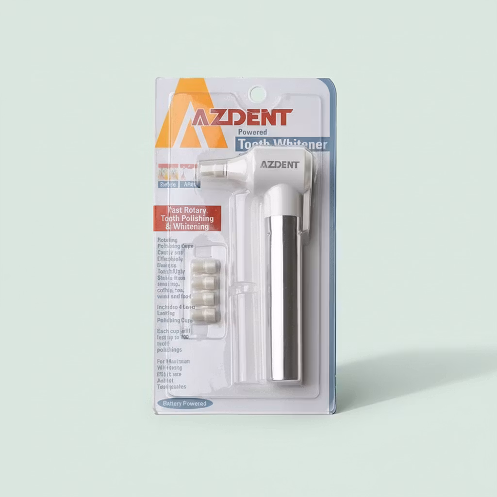 Tandpoleringsmaskinen är batteridriven och ger en kraftfull men samtidigt behaglig polering för dina tänder. Du kan enkelt polera bort envisa fläckar från matrester eller kaffe. Lämnar tänderna mjuka, vita och glansiga. Tandpoleringen levereras inklusive 5 polerkoppar - varje kopp varar upp till 100 användningar. Kräver 2 AA-batterier (ingår ej).