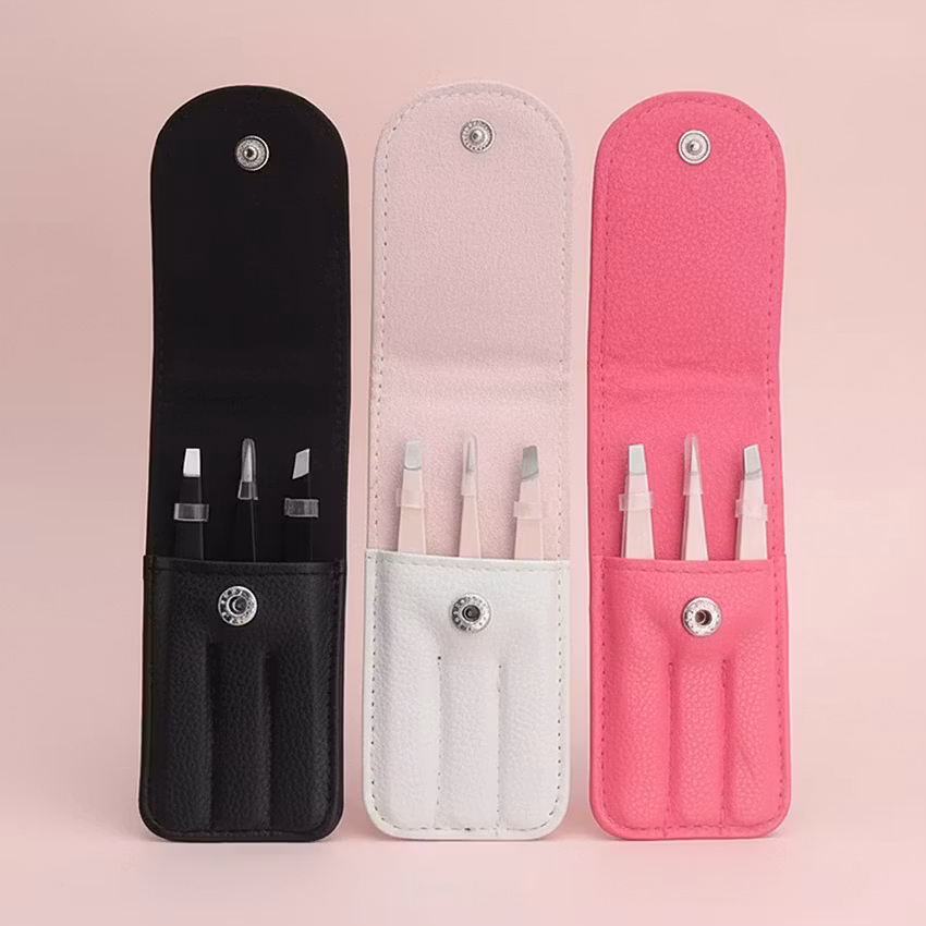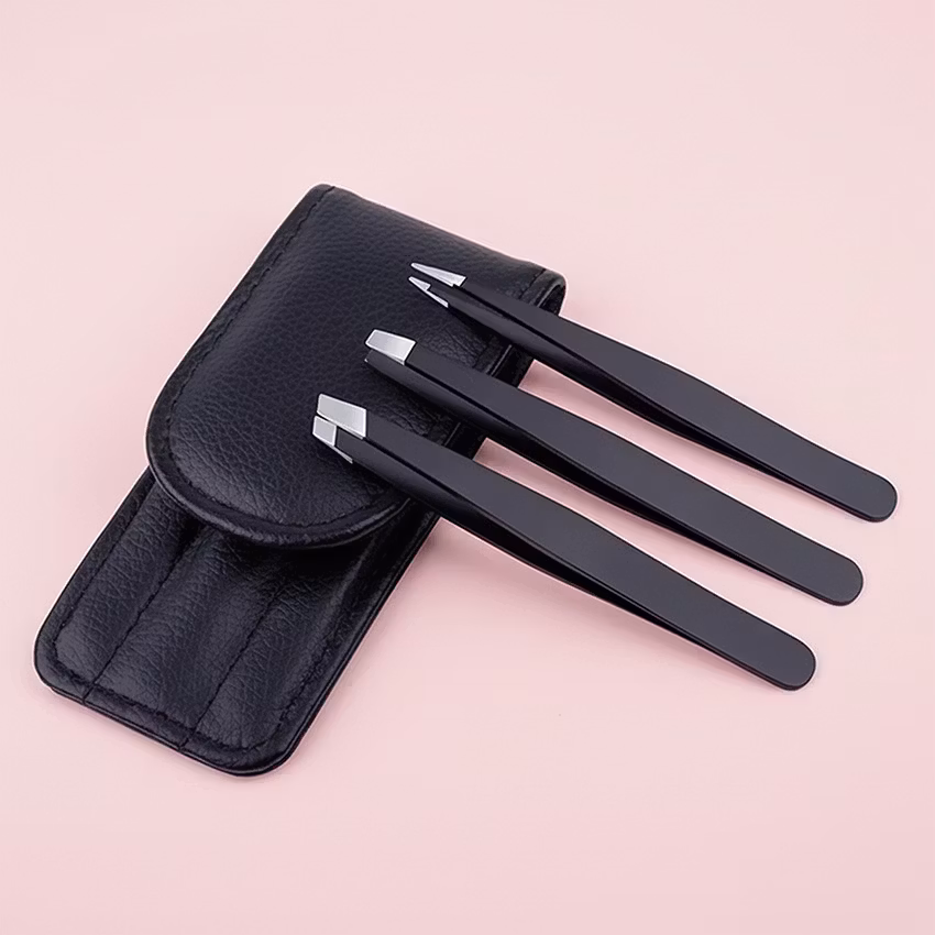 Pincetterna är gjorda i rostfritt stål som är både hållbart och enkelt att hålla rent. De kommer i ett smidigt fodral som skyddar dem och håller ordning på dem i badrumsskåpet eller necessären.