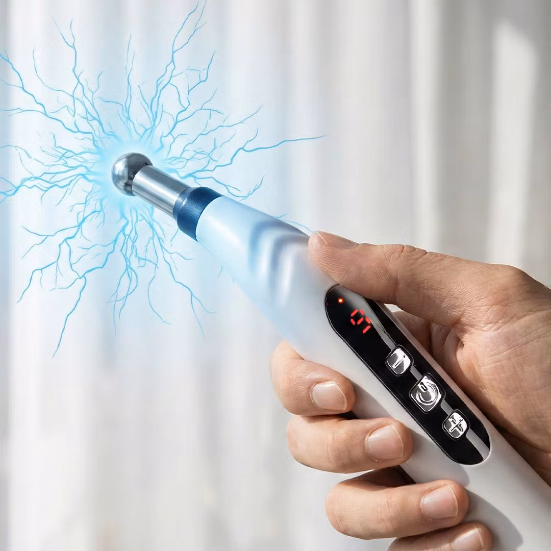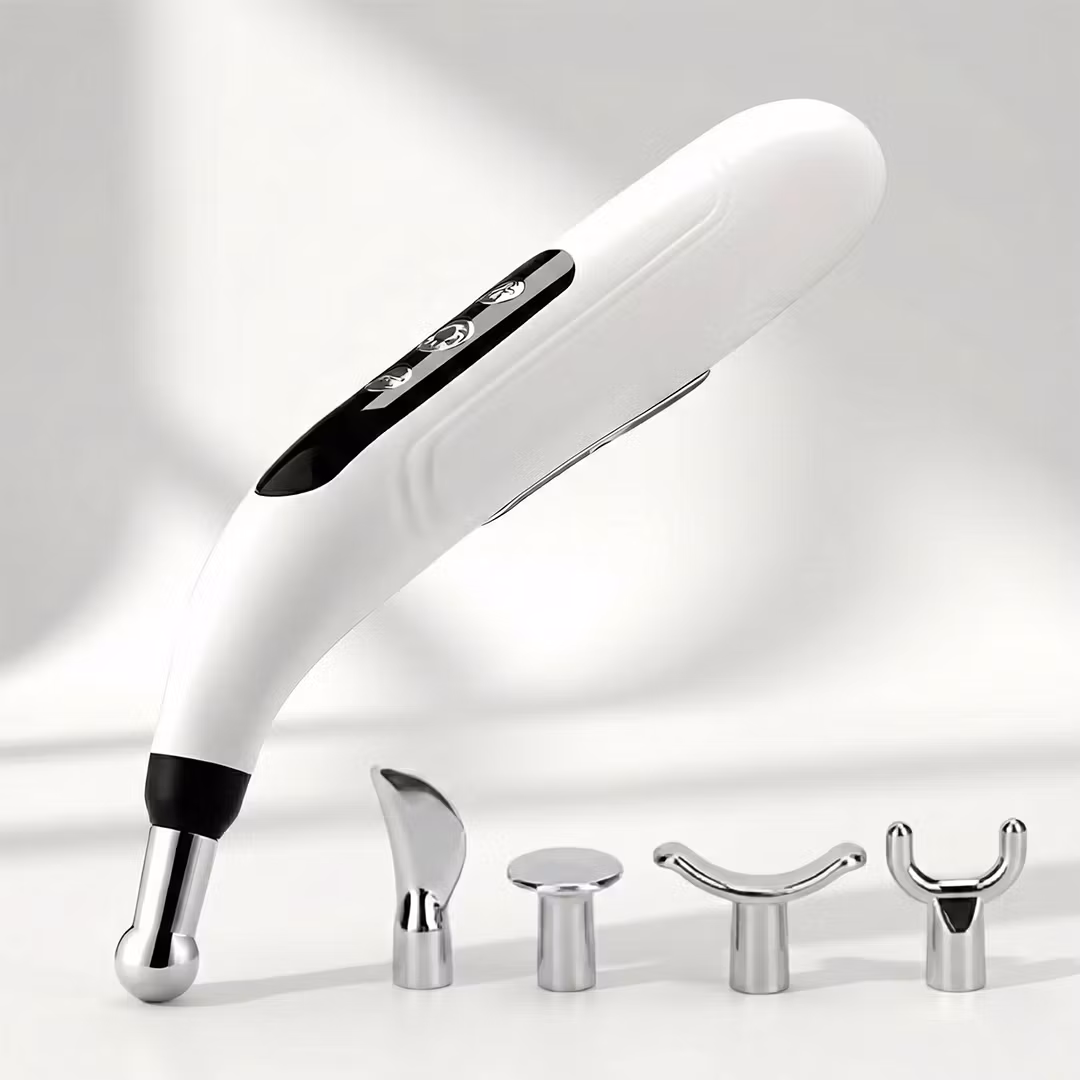 Denna massagepenna använder milda elektriska pulser för att stimulera dina triggerpunkter, precis som vid akupunktur. Det hjälper till att lösa upp muskelknutor, öka blodcirkulationen och lindra smärta. Med 9 olika intensitetsnivåer kan du enkelt anpassa behandlingen, från en lätt avslappnande massage till en djupare stimulering. De fem medföljande munstyckena är utformade för olika delar av kroppen – perfekt för allt från spända axlar till ömma fötter.