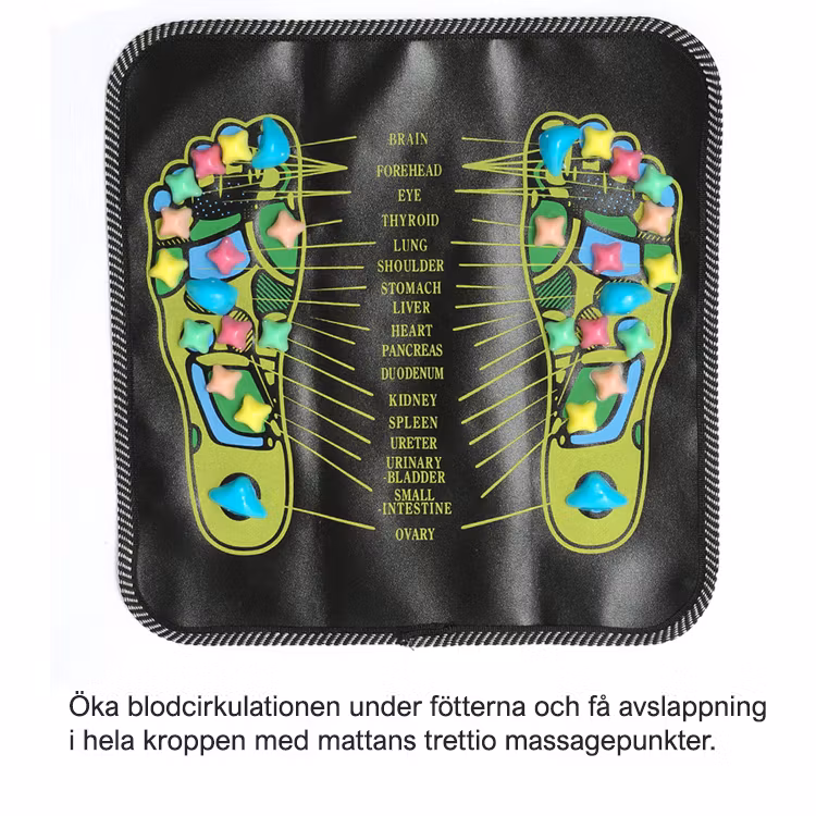 Ett vanligt problem är att vi belastar våra fötter fel. Det ger problem och smärta i fötterna. Denna matta för fotmassage ger en behaglig massage till trötta fötter. Femton minuter varje dag räcker!