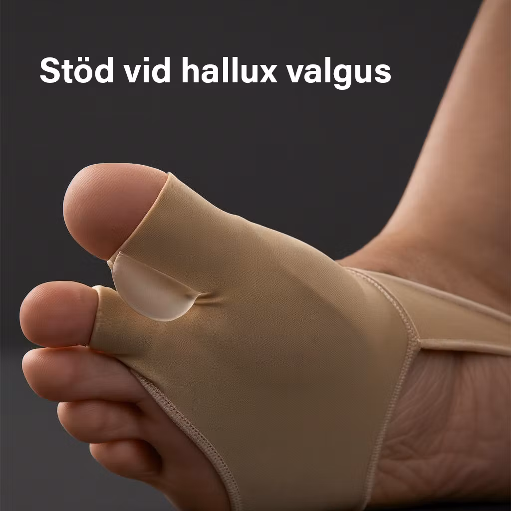 Detta populära skydd mot hallux valgus syftar till att ge stöd och lindring vid hallux valgus, vilket en fotåkomma som kännetecknas av en inåtriktad vinkling av stortån. När du köper denna produkt får du två stycken stöd, som placeras runt stortån och hjälper till att rätta till dess position samtidigt som den ger avlastning och lindring vid smärta.