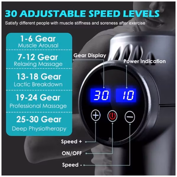 Ge dina muskler en välförtjänt massage och återhämtning med hjälp av denna fantastiska massagepistol. Denna massagepistol ger dig en underbar massage över hela kroppen. Du kan massera rygg, axlar, lår, ben, vader och dina fötter enkelt och bekvämt.
