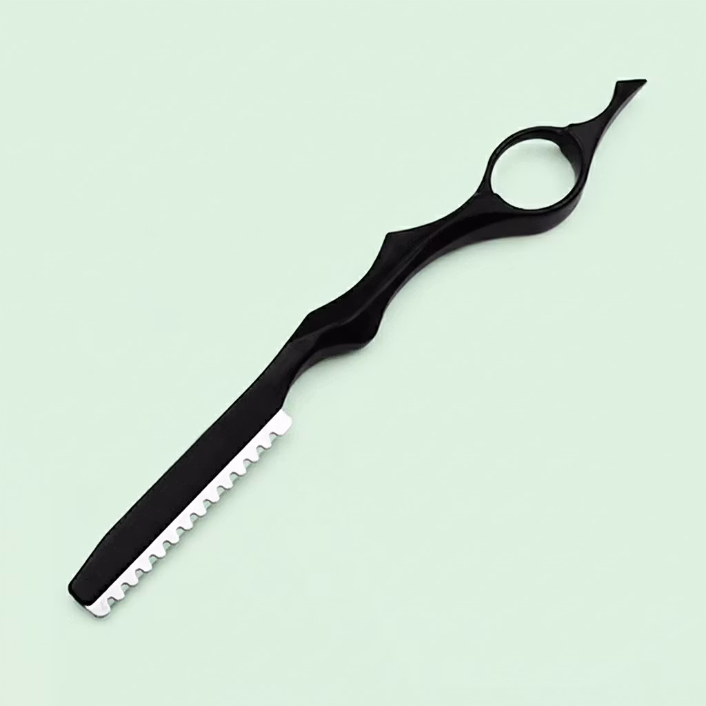 En professionell frisörkniv som används av frisörer för att tunna ur håret.  Frisörkniven är skön att hålla och fingerstödet gör den till en dröm att arbeta med. Urtunningskniven håller mycket hög kvalitet och kan användas såväl hemma som på salongen.