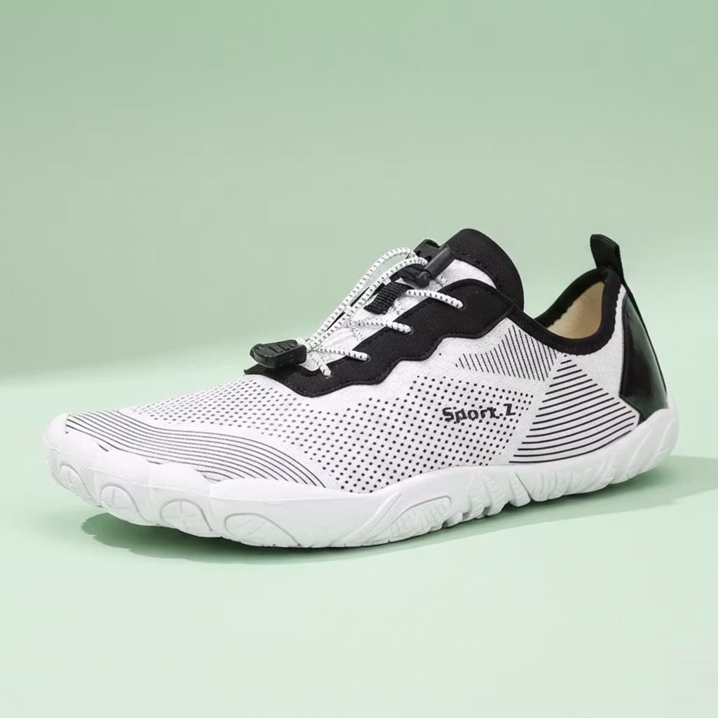 Dessa barfotaskor är utformade för en aktiv livsstil. Oavsett om du älskar löpning, promenader eller tuffare terräng, så ger dessa skor det stöd och skydd som behövs för att du ska kunna njuta av varje steg. Den kraftigt räfflade sulan ger ett utmärkt grepp på alla underlag, från stigarna i skogen till surfingbrädan på havet. Skorna har också smarta dräneringshål i sulan, vilket gör att vatten lätt kan rinna ut och hålla dina fötter torra och bekväma.